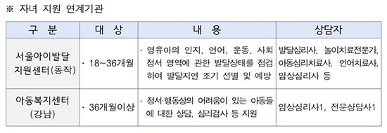 <자녀 발달지연 의심될 경우 ‘서울아이발달지원센터’ 등 전문기관 개입‧연계>