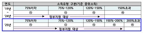 – 기준 중위소득 150%~200% 이하 가구까지 이용요금 정부지원 대상 확대