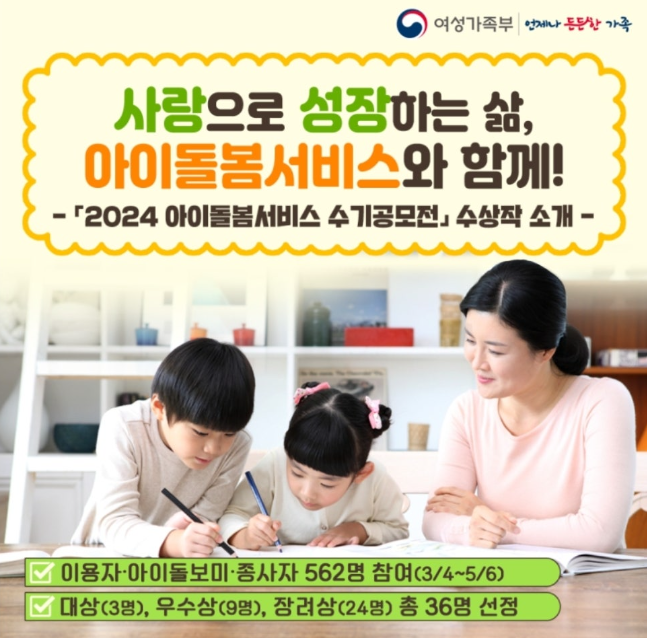 여성가족부는 2024 아이돌봄서비스 수기공모전을 통해