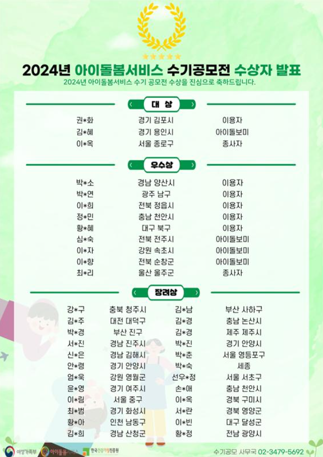 ▶ 2024 아이돌봄서비스 수기공모전 종사자 부문 대상. (출처 : 여성가족부 블로그)
