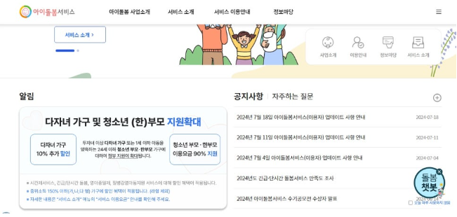 ▶아이돌봄서비스 누리집 첫 화면. (출처 : 아이돌봄서비스 누리집)