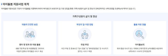 ▶아이돌봄 지원사업 목적. (출처 : 아이돌봄서비스 누리집)