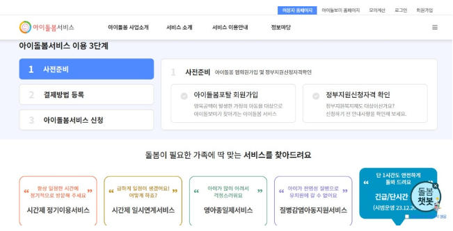 첫째, 사전준비과정으로 아이돌봄서비스 누리집 회원가입 및