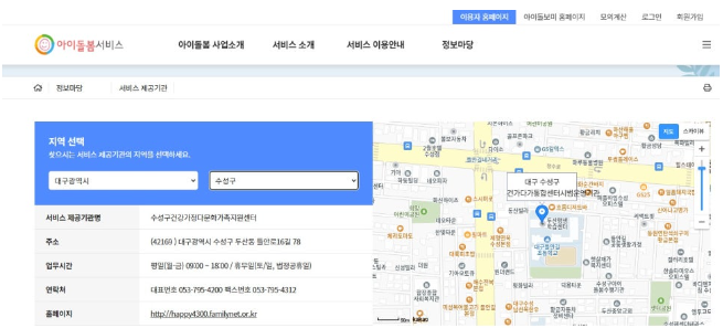 ▶우리 동네 아이돌봄서비스 제공기관도 검색가능하다. (출처 : 아이돌봄서비스 누리집)