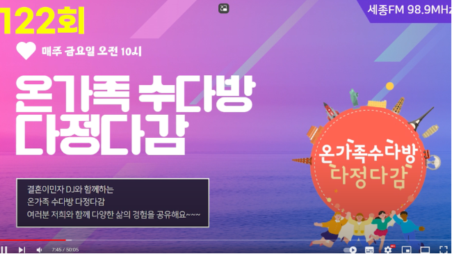 세종FM 98.9㎒에서 매주 금요일 오전 11시부터