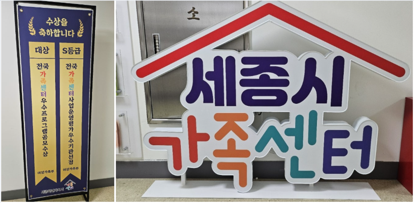 ​▶ 세종시가족센터 표지판 및 수상 배너 (출처 : 직접 촬영)