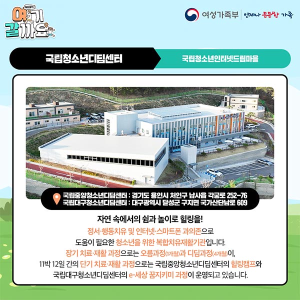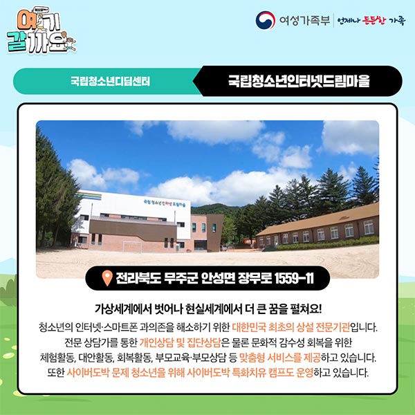 정서·행동 문제, 스마트폰 과의존으로 고민이라면 청소년 여러분 여기 같이 가볼까요? -디딤센터, 인터넷드림마을-