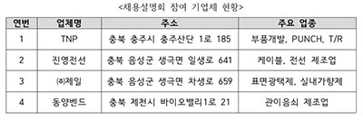 지역 내 기업체는 외국인력 비율과 근무 만족도가 높은 곳으로 충주·제천·음성고용복지+센터에서 선정했다.