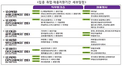 고용노동부는 일자리를 찾는 청년들의 어려움과 고민을 해소하기 위해 「고용복지+센터 집중 취업‧채용지원 기간」(12월 2주~3주)을 운영한다.