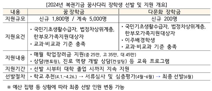 2024년 복권기금 꿈사다리 장학생 선발‧지원 –