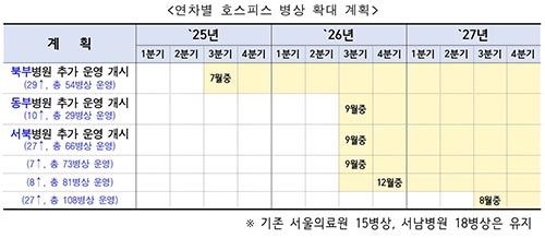 - 5개 시립병원 145개 호스피스 병상 운영 중… ’27년까지 총 224개 단계적 확대