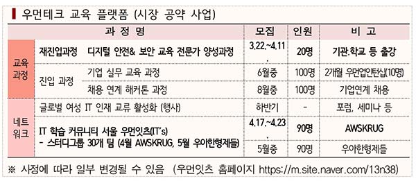 - 취업‧이직 시장에서 중요해진 IT 역량 강화 지원 ‘우먼 테크교육 플랫폼’ 추진