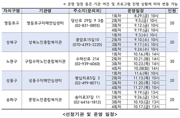 □ 특히 상반기 프로그램 진행 중, 여러 기관에서 운영 확대 요청이 잇따라 시는 올해 5월 수요 조사를 했다. 조사 결과 총 31개 기관이 신청하며 높은 관심을 보였고, 시는 자치구별 안배 등을 고려한 내부 심사를 거쳐 최종 5개 기관을 선정했다. 각 기관에는 4회차 수업과 1회의 정원투어가 제공된다.