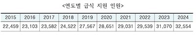○ 어르신 인구의 증가로 급식서비스를 필요로 하는 지원대상은 지속적으로 증가하는 추세이다. 2025년 9월 기준, 서울시는 약 3만 3천여 명의 어르신들에게 무료 식사를 제공하고 있으며 매년 지원 인원을 확대해 가고 있다.