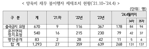 □ 여성가족부는 제34차(2.19~2.21) 및 제35차(4.8~4.9) 양육비이행심의위원회를 개최하고 양육비 채무 불이행자 제재조치 대상자(합계 268명)를 결정했다.