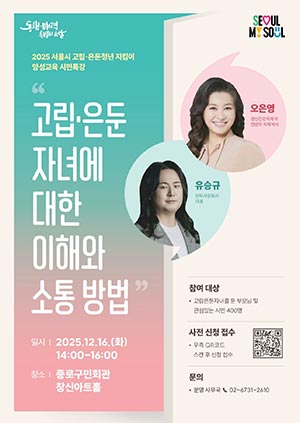 - 고립·은둔청년 부모를 위한 시민특강 12/16(화) 14시 종로구민회관 창신아트홀에서 개최