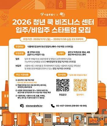 - 청년 쿡 비즈니스(광진) 및 푸드테크(영등포) 센터 참여 스타트업 1월 30일까지 모집