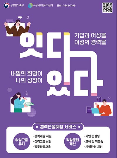 ㅇ “여성이 경력단절 없이 지속적으로 일할 수 있는 환경을 만들기 위해 경력단절 예방 서비스를 확대하고 기업·지역사회와 함께 여성 고용 유지 문화 확산을 추진하겠다”고 밝혔다.