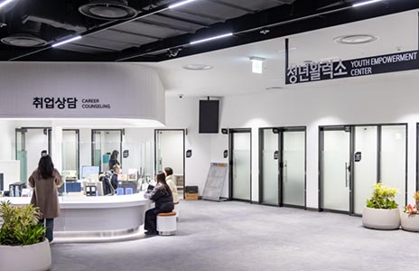 ○ 공간은 개방형 상담창구와 독립 상담실로 구성되어 간단한 문의나 진로 상담은 빠르게 창구에서, 심층 상담이나 맞춤 컨설팅은 별도 상담실에서 이어갈 수 있도록 설계됐다. 이를 통해 청년들이 느끼는 기관 방문 부담과 초기 진입장벽을 낮추고 상담 접점을 확대하는 데 초점을 맞췄다.