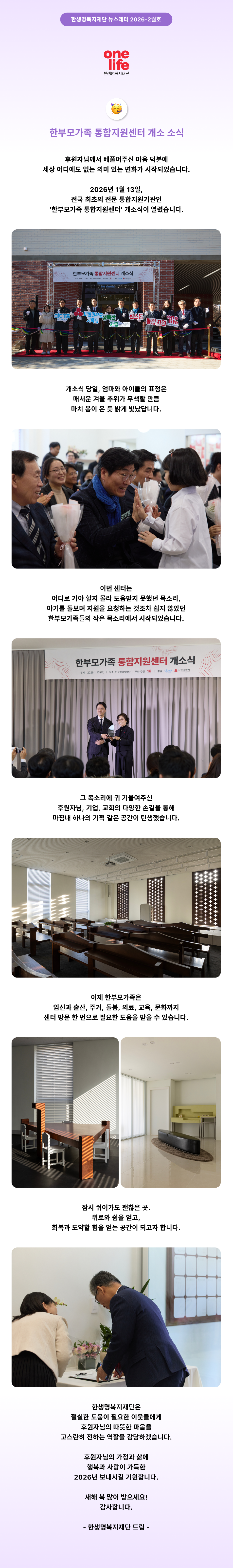 한생명복지재단 2026년 뉴스레터 2월호 💌